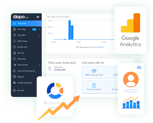 Nhờ việc tích hợp báo cáo Google Analytics vào ZNES, bạn có thể dễ theo dõi các thông tin như có bao nhiêu người truy cập vào website, họ truy cập vào từ máy tính hay mobile? Họ bao nhiêu tuổi ? Là nam hay nữ … ngay trên trang quản trị Sapo Web. Kiểm soát tốt các chỉ số trên, bạn sẽ dễ dàng đánh giá hiệu quả website đem đến cho việc kinh doanh của mình